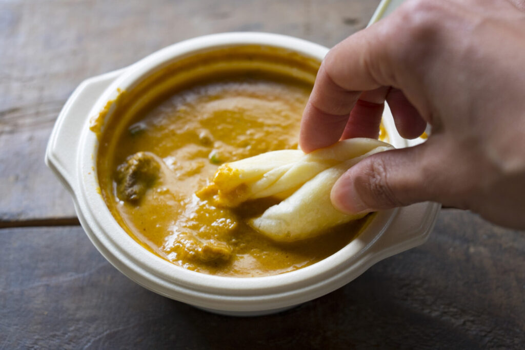 皮は何種類か用意したほうがアレンジの幅が一気に広がるのでおすすめです。硬めのタコスシェルは砕いてサラダにふりかけたり、余ったトルティーヤでピザにしたり。今回用意したパラタはほんのり甘みがあり、スパイシーなカレーと好相性でした。食後にアイスクリームをのせてデザートとしても楽しめます。